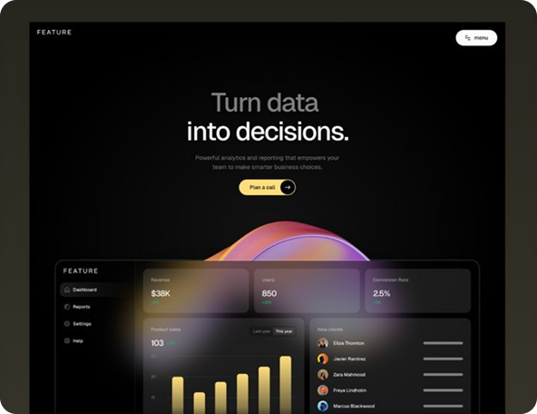 Landing for AI analytics platform